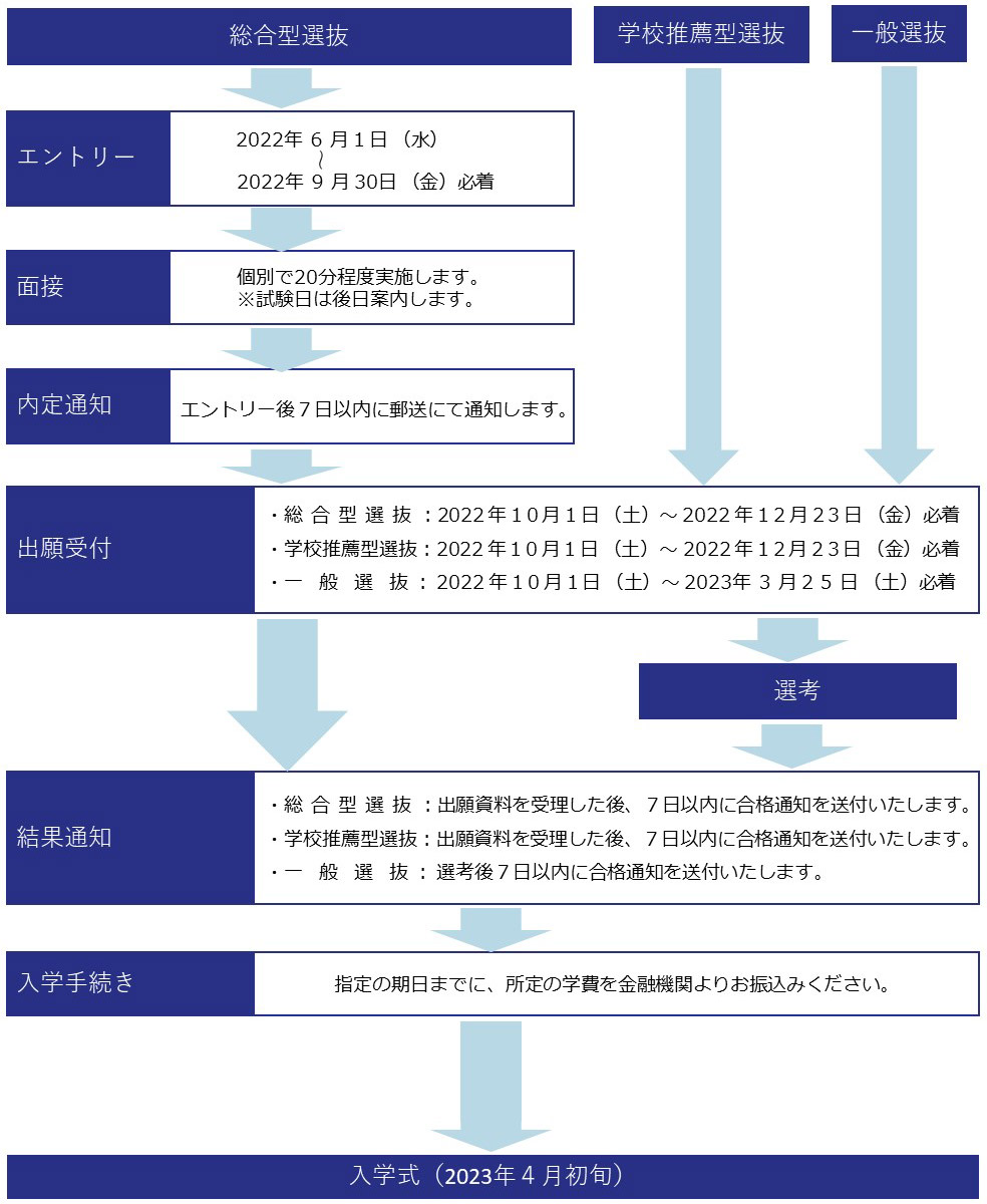 ・出願書類を受理した後、面接日時は郵送にて通知します。