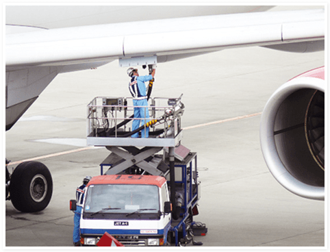出発便ごとに決められたジェット燃料を航空機に正確に搭載します。ジェット燃料は可燃性の液体です。気化すれば引火の危険性もあるので徹底した安全作業が求められます。また、安全な飛行のため燃料の品質管理も重要です。