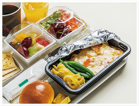 機内食の搭載を行います。機内食の内容や搭載数は行先やシートのクラス(エコノミー、ビジネス、ファースト等)によって異なります。機内食も快適で楽しい空の旅を彩る大切な要素となっています。