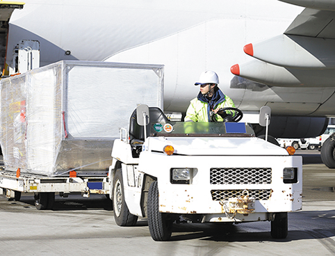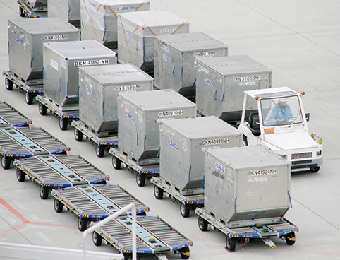 地上で集められた様々な貨物は飛行機に搭載できるよう、内容物に合わせて必要な手配や取扱いを行います。到着貨物は速やかに引き渡せるよう、案内や手配を行います。