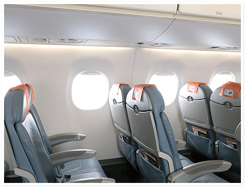 航空機が空港にいる限られた時間内でゴミをまとめ、トイレやシートテーブル、カーペットまできれいにします。そして、機用品管理スタッフが準備した機内用品を補充します。客室の準備を整え快適な空間を作る仕事です。