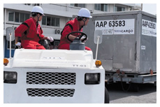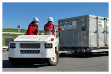 1年次3月〜実際にULD類を載せて、空港で行われている作業に準じた訓練を実施します。