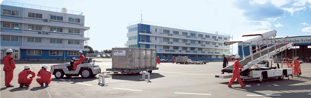 9月に取得したフォークリフト運転技能を以て本格的な荷役作業の基礎を習得します。将来航空貨物の道を志す学生も出てきます。