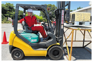 基本走行訓練を入学後から始め、9月までに全員がフォークリフト運転技能の基礎を習得します。