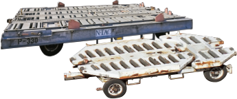 パレットやコンテナ(ULDの一種)を運搬するための台車。