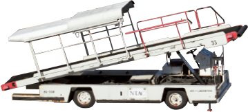 航空機の貨物室に積まれるバラ積み貨物や郵便物、お客様の手荷物などを搭降載するための器材。ベルトコンベアを装備している。