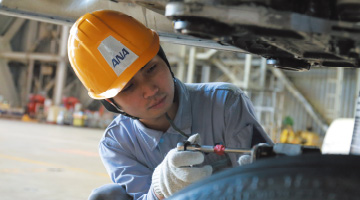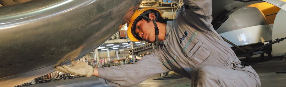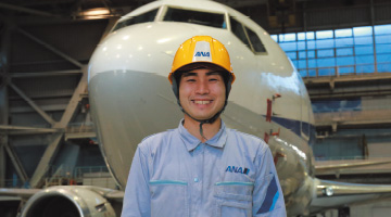 学校卒業後、ANAベースメンテナンステクニクスに入社し、訓練生として日々整備業務について学んでいます。訓練では各機種の知識や簡単なパーツの取り付け、取り外しを中心に勉強しており、その中で意識していることは危険予知を含めた準備作業です。作業の効率化だけではなく、人身事故や機材損傷防止にもつながるので常にそのことを意識しながら作業に取り組んでいます。入社してまだ半年なので学ぶべき事は多いですが少しずつできるようになる事で自信ややりがいを感じるようになりました。今後は現場で経験を積み、資格を取得していきたいと考えています。