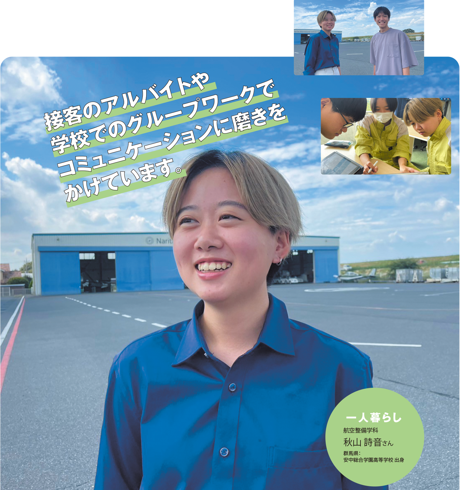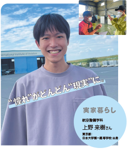技術職に憧れがあり、最先端技術の航空機に触れてみたかったので、航空整備士を 目指しました! 入学してから、“憧れ”がどんどん“現実”になっていくのを実感しています。 -